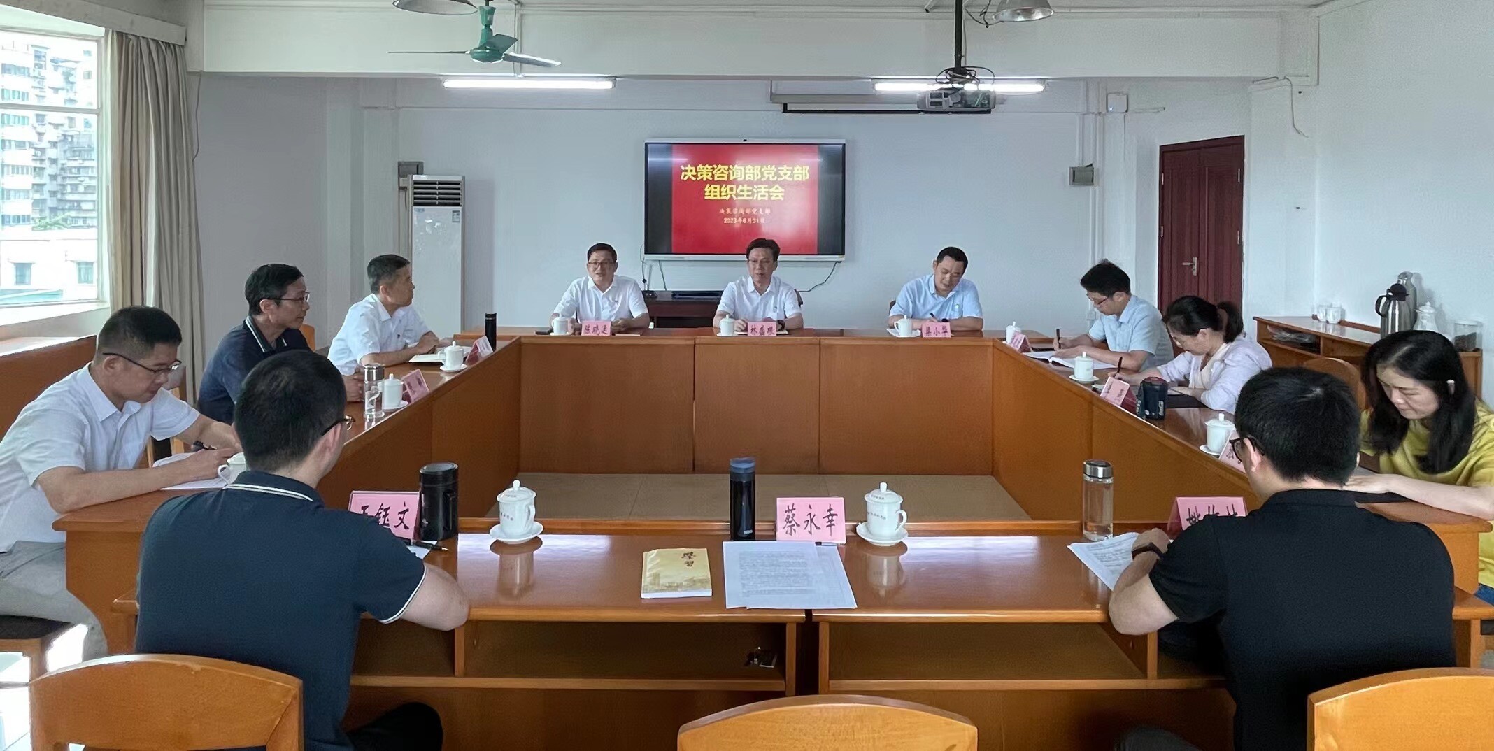 8月31日下午,决策咨询部党支部召开学习贯彻习近平新时代中国特色社会主义思想主题教育专题组织生活会。校(院)委委员林盛根出席会议,党支部书记陈晓运主持会议。
