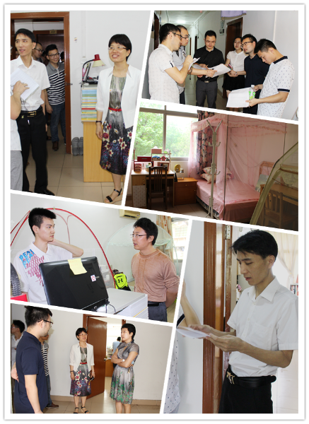 5月13日,研究生部举办了2016年“创建文明和谐宿舍”评比活动。蓝革副主任带各班主任、研会分管老师以及学生代表组成的评委组,对学生宿舍的内务卫生、宿舍安全和宿舍文化进行了检查评议。